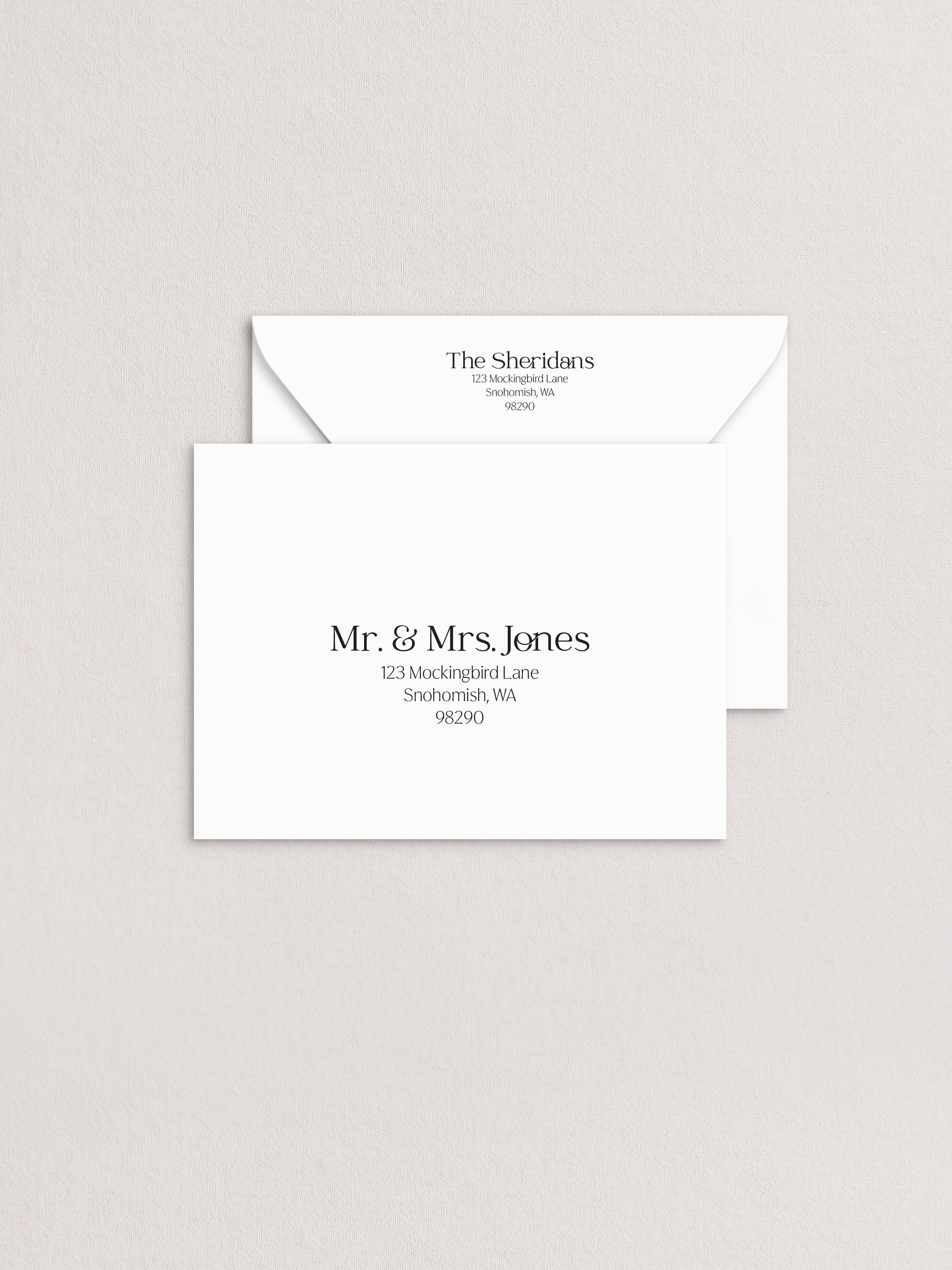 • Print method, envelope color and ink are all customizable. There is room for minor changes to text, please include any requests in your form submission. The overall design will remain the same.